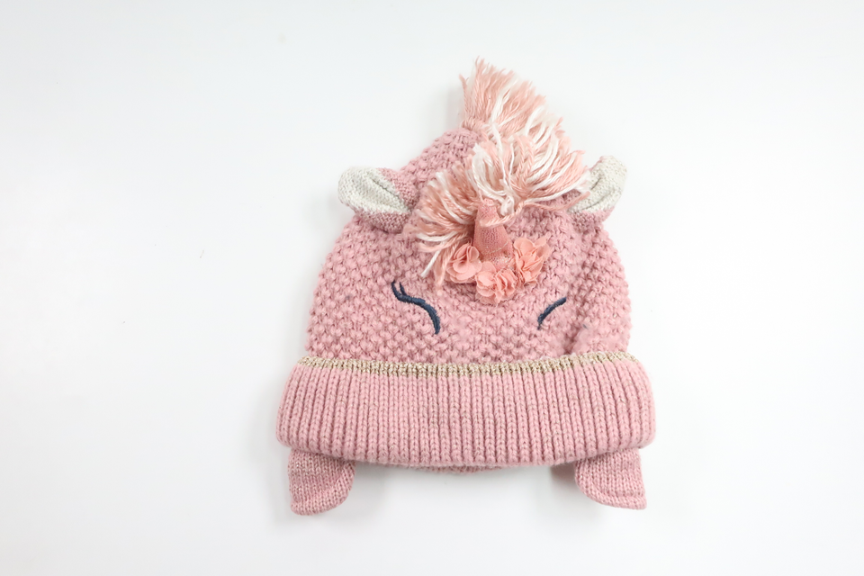 Fleecefodrad mössa med Enhörning från Next - Storlek 98/104 - Rosa