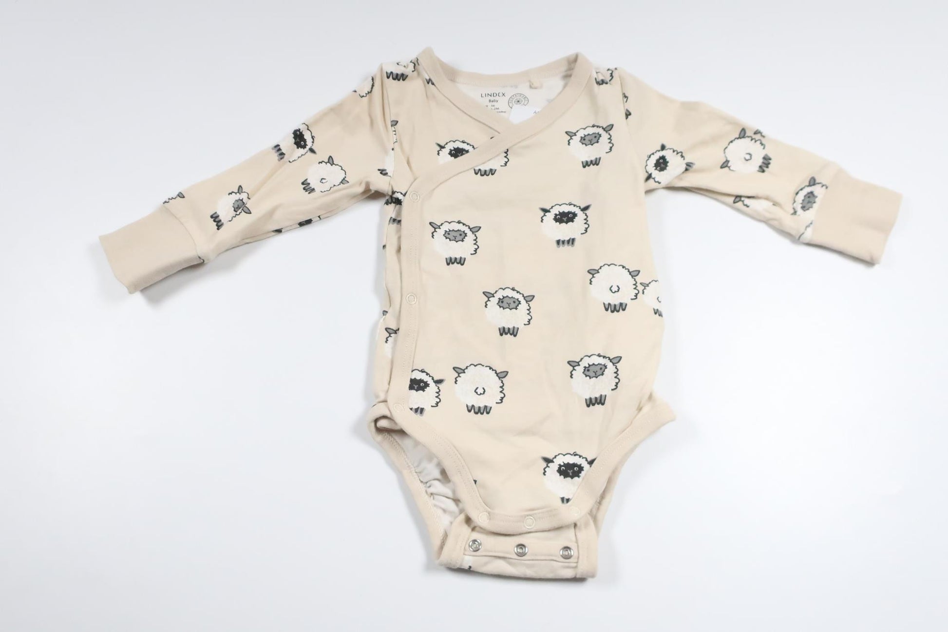 Wickelbody mit Lammfell von Lindex – Größe 56 – Cremeweiß